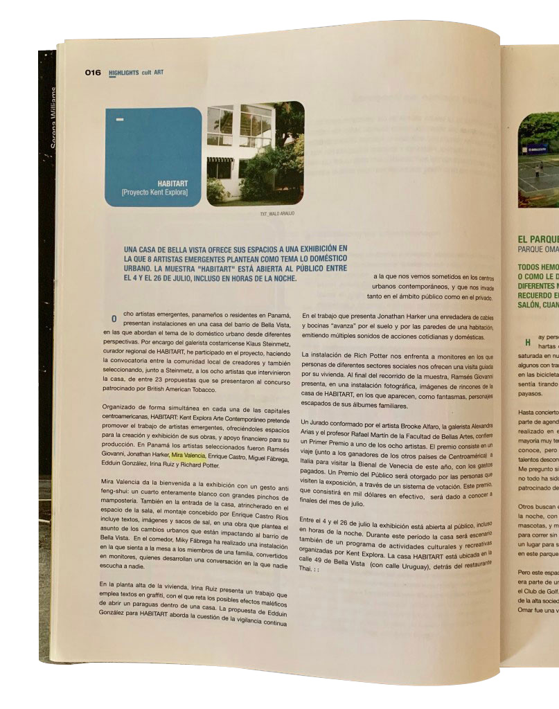 Eight artists intervening eight rooms in an old house in Bella Vista area Award for the Best InterventionPanama Art Biennal (6th Edition)